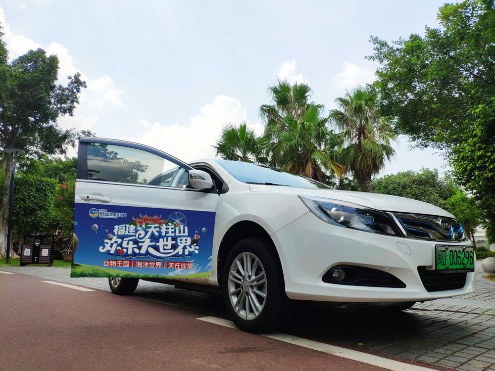 2021年6月福建天柱山歡樂大世界再次與天藝傳媒攜手,合作投放全城移動(dòng)式曝光的網(wǎng)約車車身媒體,200輛網(wǎng)約車同時(shí)閃耀上路,全城視線聚焦,即刻拉開天柱山歡樂大世界2021年度的宣傳序幕。