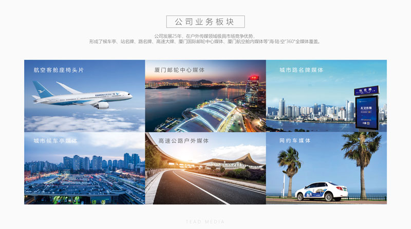 如今的天藝傳媒已經(jīng)成為廈門廣告媒體行業(yè)的龍頭企業(yè),秉著合作共贏,品效合一的理念,依托本土經(jīng)濟(jì)發(fā)展的優(yōu)勢以及深厚的客戶合作資源平臺,逐步構(gòu)建起豐富強(qiáng)勢的“海、陸、空360°”全媒體生態(tài)圈。同時,業(yè)務(wù)范圍覆蓋品牌管理、創(chuàng)意策劃、整合營銷、媒體投放等傳播鏈條。在占據(jù)戶外全媒體資源優(yōu)勢的同時,積極打造品牌運(yùn)營、整合營銷一體化的團(tuán)隊(duì),為客戶提供“一站式”的全案服務(wù)體系,全面升級產(chǎn)業(yè)鏈,構(gòu)建多元化全媒體矩陣,達(dá)到最大回報的媒體投放組合效果。2015年10月天藝傳媒成功登陸新三板,成為福建省戶外傳媒類先行上市企業(yè)。目前天藝傳媒股份有限公司旗下?lián)碛?a href="http://m.wuyourosa.com/business/youlun/">廈門國際郵輪中心媒體、招銀疏港高速公路媒體、廈門市島內(nèi)外的路名牌、站名牌和公交候車亭、廈門機(jī)場(手推車媒體)、廈門航空(客艙媒體)、廈門地鐵媒體等面向全廈門市、輻射全福建省乃至全國的高端媒介資源。