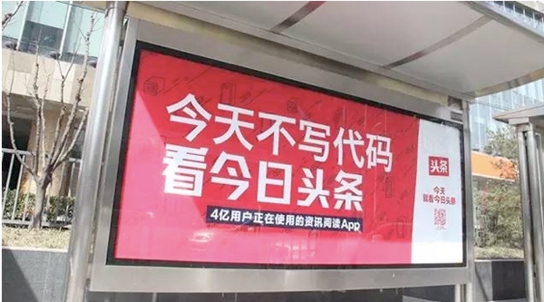 那么,兼具社交屬性與戶(hù)外廣告自身特性的戶(hù)外廣告2.0版,究竟如何用場(chǎng)景化營(yíng)銷(xiāo)手段,調(diào)動(dòng)一眾逗逼路人一塊玩耍,發(fā)起由線下至線上的一股股參與熱潮?不妨可以看看今日頭條、紅牛、一點(diǎn)資訊以及百度語(yǔ)音搜索這四家最近的戶(hù)外廣告案例。